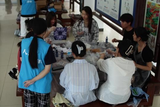 在公司党总支员工党支部指导下,近日,青年志愿者协会在一号教学楼一楼成功举办了第十三期“趣绘家”活动——非遗扎染手工制作志愿活动。