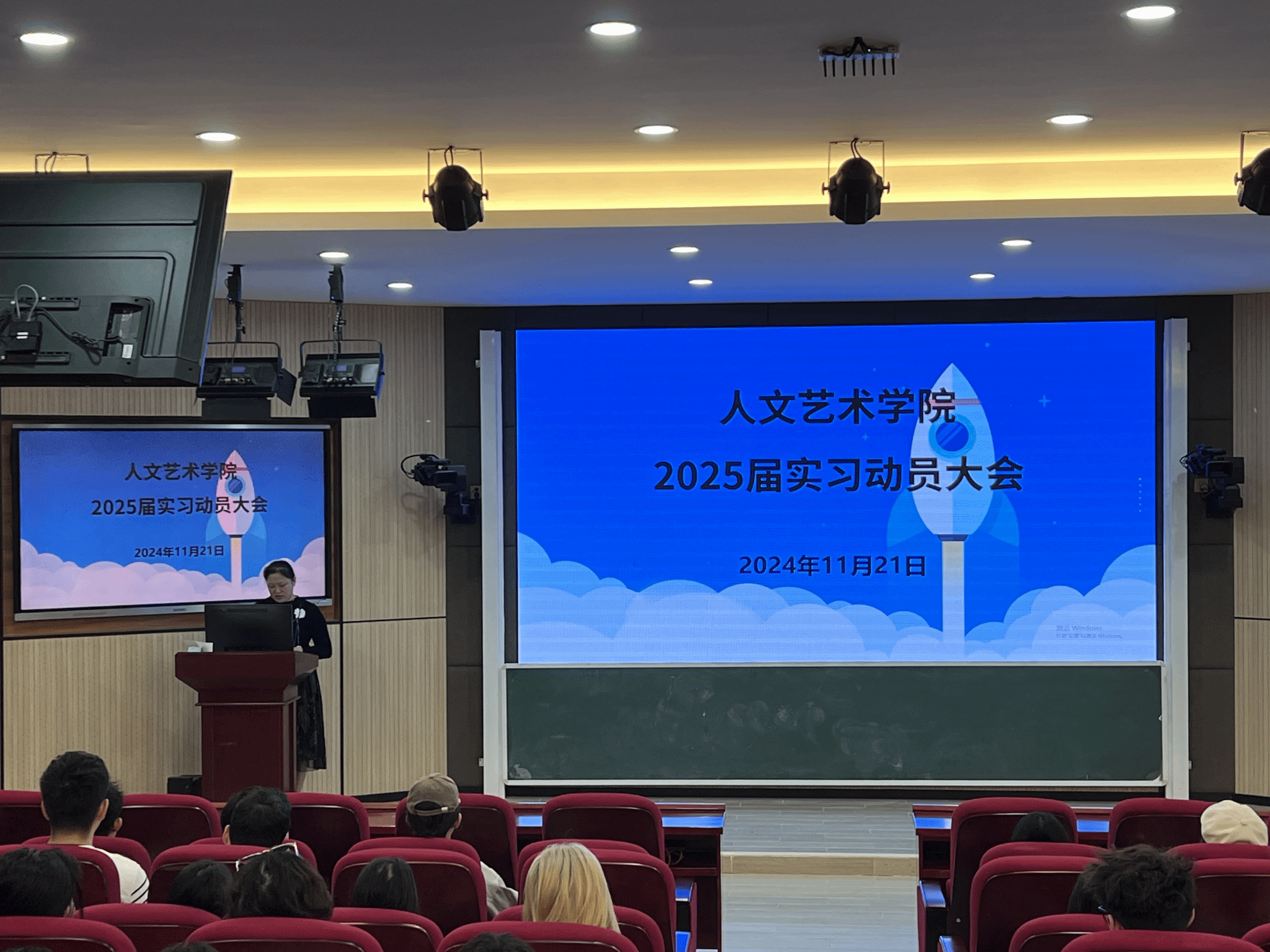 2024年11月21日,公司召开2025届毕业生实习动员会,教务办、学工办、各专业负责人、实习指导老师、全体毕业生参加动员会,由吴丽敏副经理主持会议。
