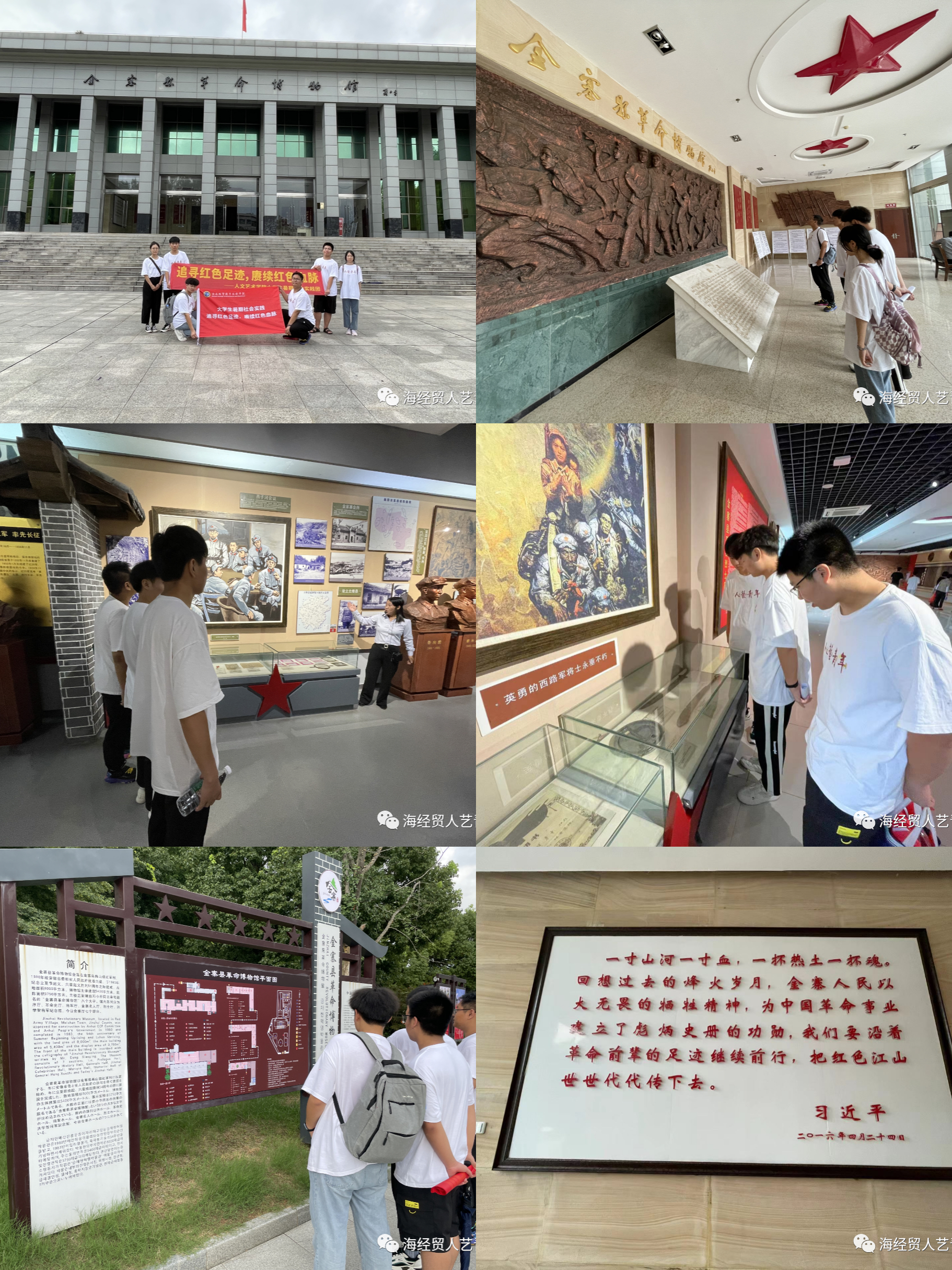 7月14日,团队结合本次暑期实践主题前往金寨红军广场、金寨县红军纪念堂等红色教育基地。在学习金寨革命历史的同时,重走习近平总书记考察之路,深入学习金寨”坚贞忠诚,牺牲奉献,一心为民,永跟党走“的大别山精神。
