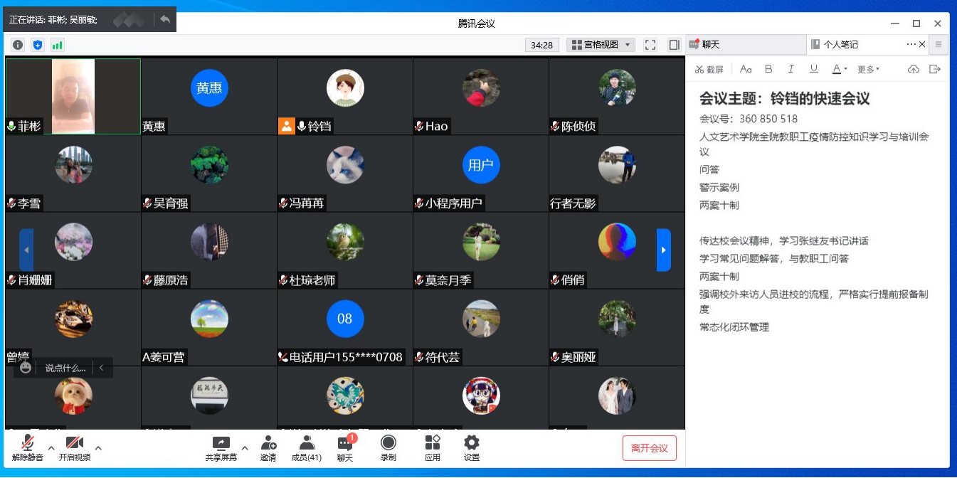 最后,何书记部署了全体教职工防疫知识测试的工作,要求会后将答题情况统一汇报至党政办公室张丹丹老师处。