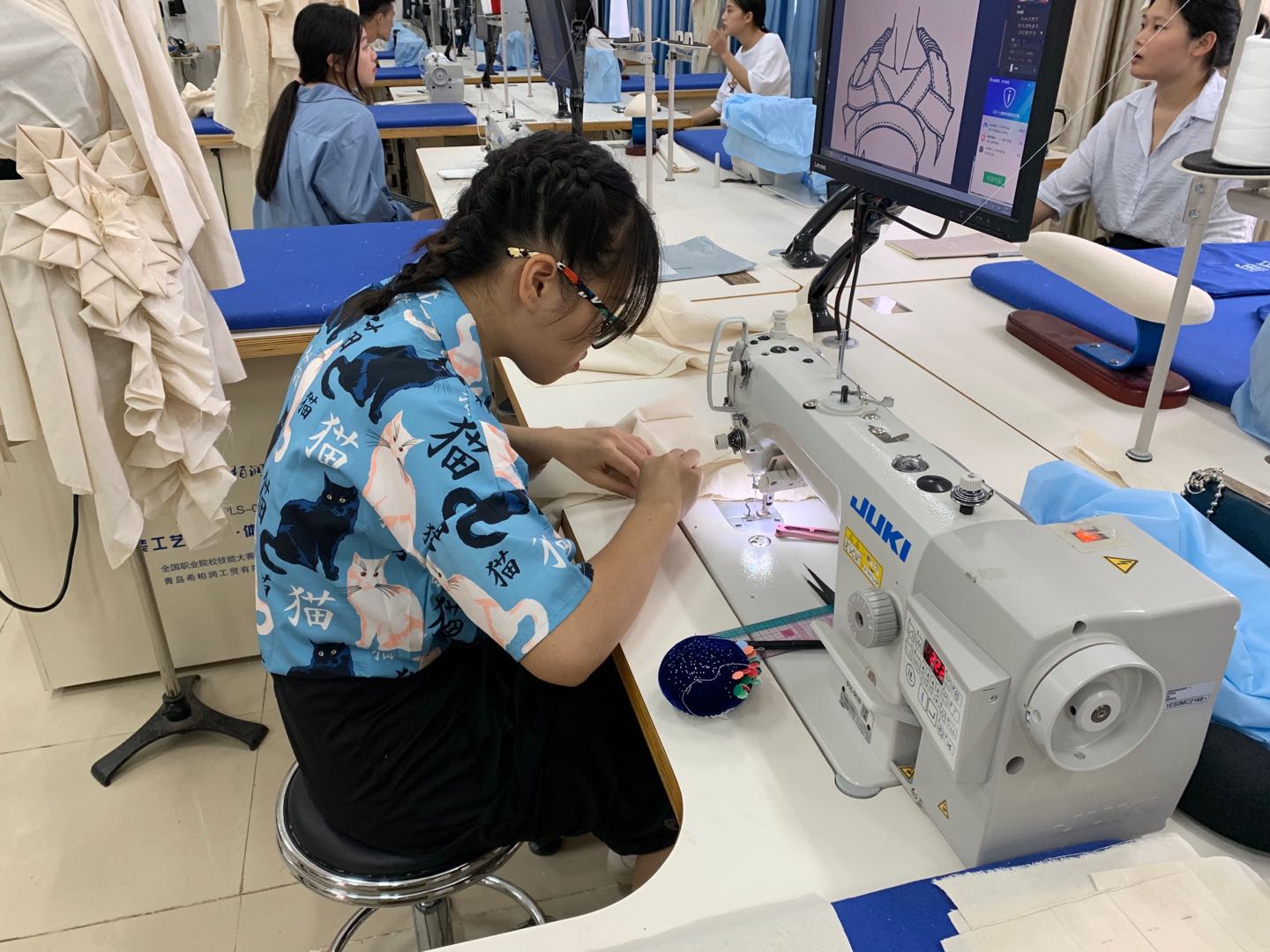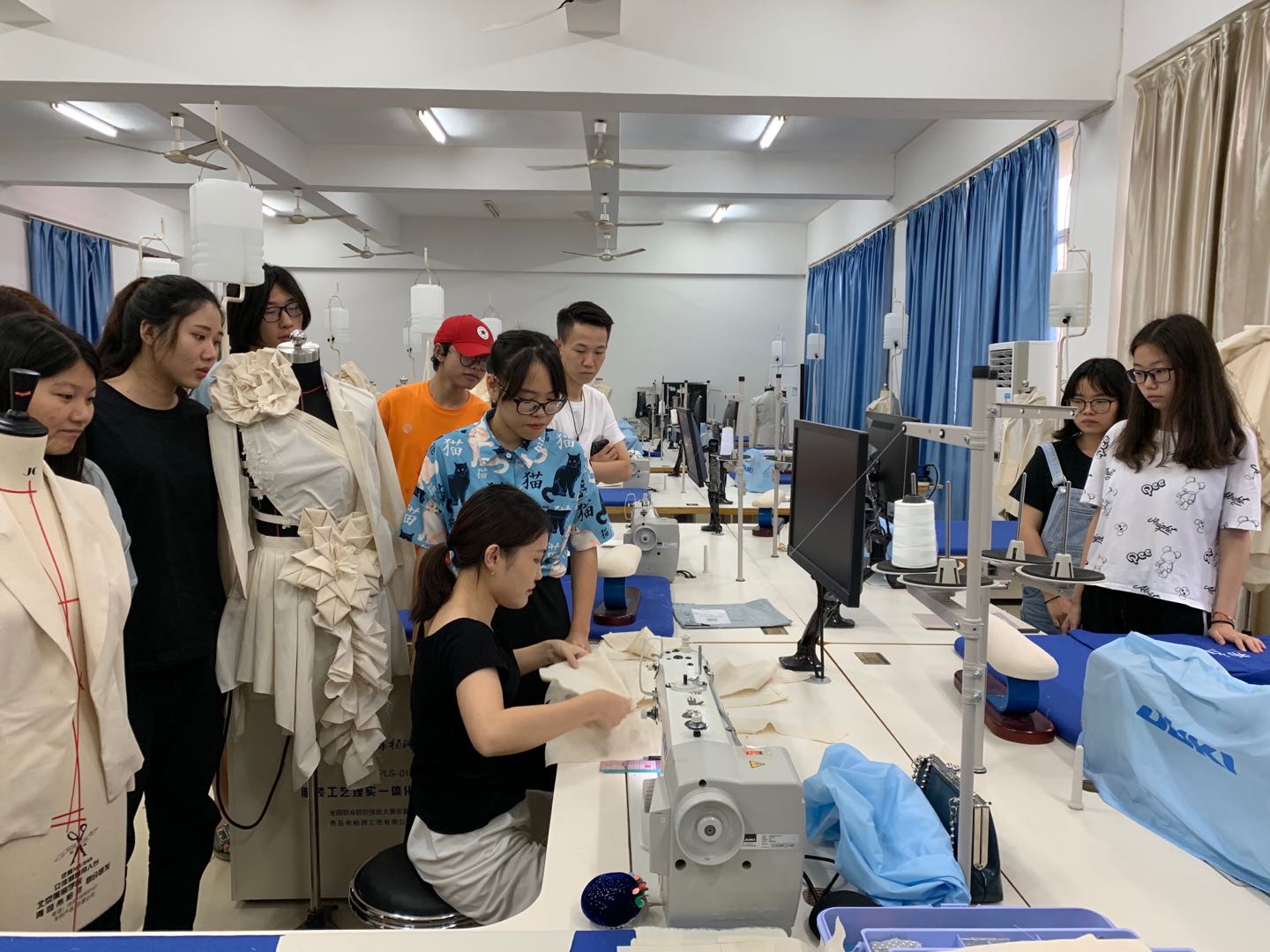 2019年5月7日,服装与服饰设计专业展开一系列技能展示、观摩活动,具体做法:1、开放1-315实训室,由国赛选手(黄评榆、唐世娟)展示服装立体裁剪、服装工艺、服装电脑辅助设计技能展示,组织服装设计专业17、18级服装与服饰设计专业4个班级进行观摩学习,并动手实践,同时接待全院其他师生及社会人员的参观;2、安排2名国赛选手(符开乾、陈井花)在经贸广场面向全院师生及社会人员展示服装立体裁剪技能;3、安排四套优秀服装成衣在展示区进行展示;4、提交服装与服饰设计专业优秀作品图片在经贸广场展区展板中展示。
