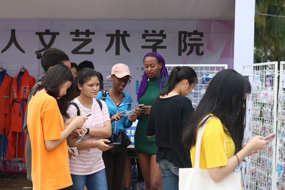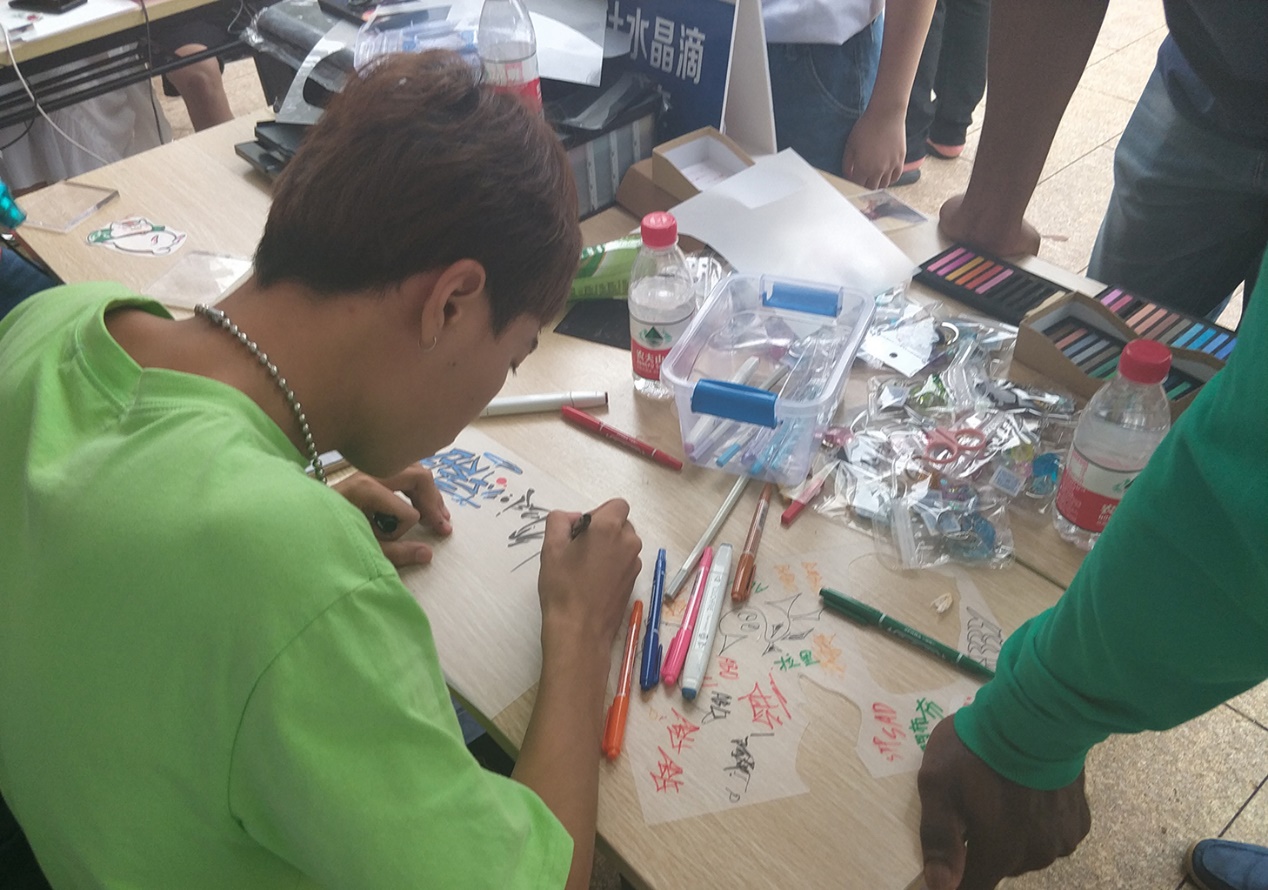 在现场展示棚内,团队成员为中职生现场定制了个性签名钥匙扣,同时还吸引了公司的外国职工的参与,深受大家好评。