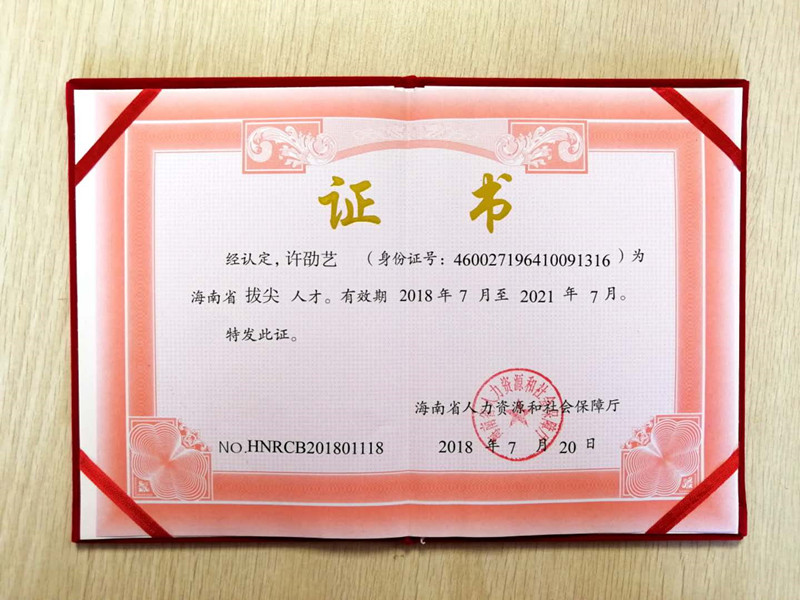 公司许劭艺经理获认定海南省高层次人才