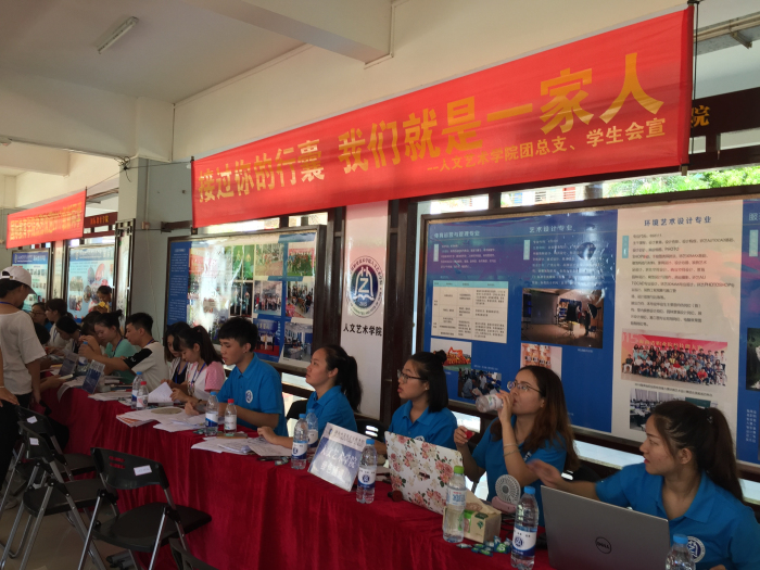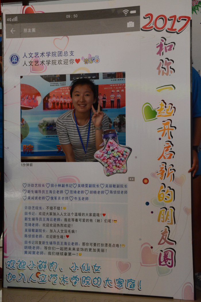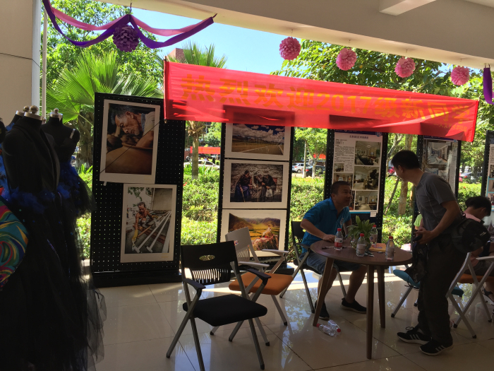 飘扬的彩带,温馨的迎新标语,创意十足的朋友圈照片墙,具有专业特色的展板及服装设计作品将迎新现场装饰得别具特色。公司许劭艺经理、田小林副书记、吴晓雯副经理、吴丽敏副经理,学工办、党政办、教务办全体行政人员以及专业负责人亲临迎新现场开展工作。提行李、带员工穿梭在34度的校园办理手续,志愿者热情周到地为17级员工提供服务。