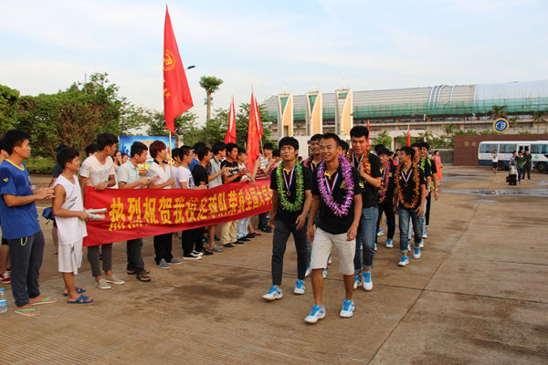 下午5时许,徐畅副书记以及公共教学部主要负责人来到美兰机场,迎接从西宁返程的足球队员。当队员们坐着校车缓缓驶入校园,一个巨大的惊喜在等待着他们:张继友书记以及100多位同学为他们举行了简短而热烈的欢迎仪式。大家高举着横幅,挥舞着彩球,欢呼着,跳跃着,向英雄们献上彩带。在同学们的掌声和欢呼声中,张继友书记代表全校师生对载誉归来的校足球队表示热烈祝贺,并与领队赵少雄、教练员及每位足球健儿一一握手,感谢他们的艰辛付出。张书记对足球队的杰出表现给予了高度评价。他说,公司足球队获得了大足赛季军,创造了海南省高校足球队参加全国大赛的最好成绩;队员们在比赛中发扬了顽强拼搏、奋勇争先的精神,是公司的骄傲,是海南的骄傲!他希望队员们继续保持昂扬的斗志和良好的状态,发挥好榜样作用,带动更多人参与到足球运动中。