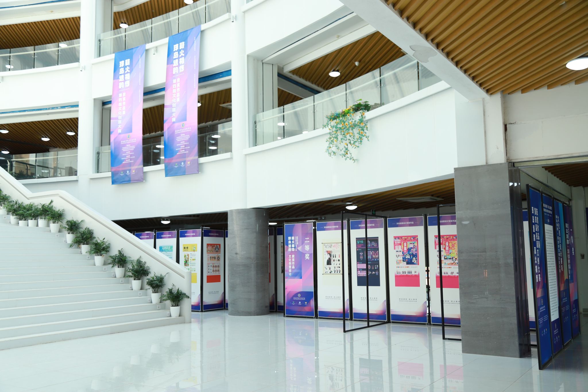 作品展展出了获得本次文化创意比赛一、二、三等奖的优秀作品。用镜头记录下琼岛人民生活图景、发挥创意设计出独具海南风情的特色文创和服装、用文字抒发对海南的热爱和建设海南自由贸易港的热情……同学们在海南本土文化中汲取灵感,创作出内容丰富多样、温度与情怀并存、充满创新元素、展现个人才华与感悟的作品。