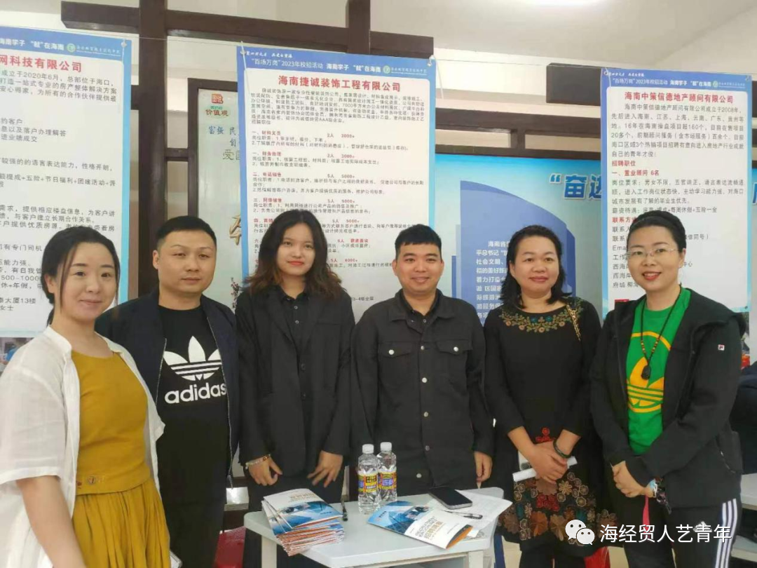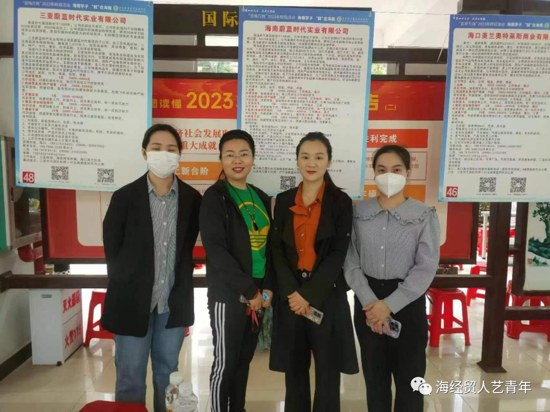 2023年4月9日上午,伟德体育胡晓副经理组织各教研室主任在招聘会中积极开展访企活动。为拓展员工的就业渠道和挖掘更多实习就业岗位,伟德体育副经理胡晓、各教研室主任来到招聘会现场访企拓岗,先后与海南蔚蓝时代实业有限公司、海南万佳实业有限公司、海南捷诚装饰工程有限公司等多家企业进行了交流,从而促进共同发展,共同构建研学合作平台,努力实现“校企合作、产学共赢。”